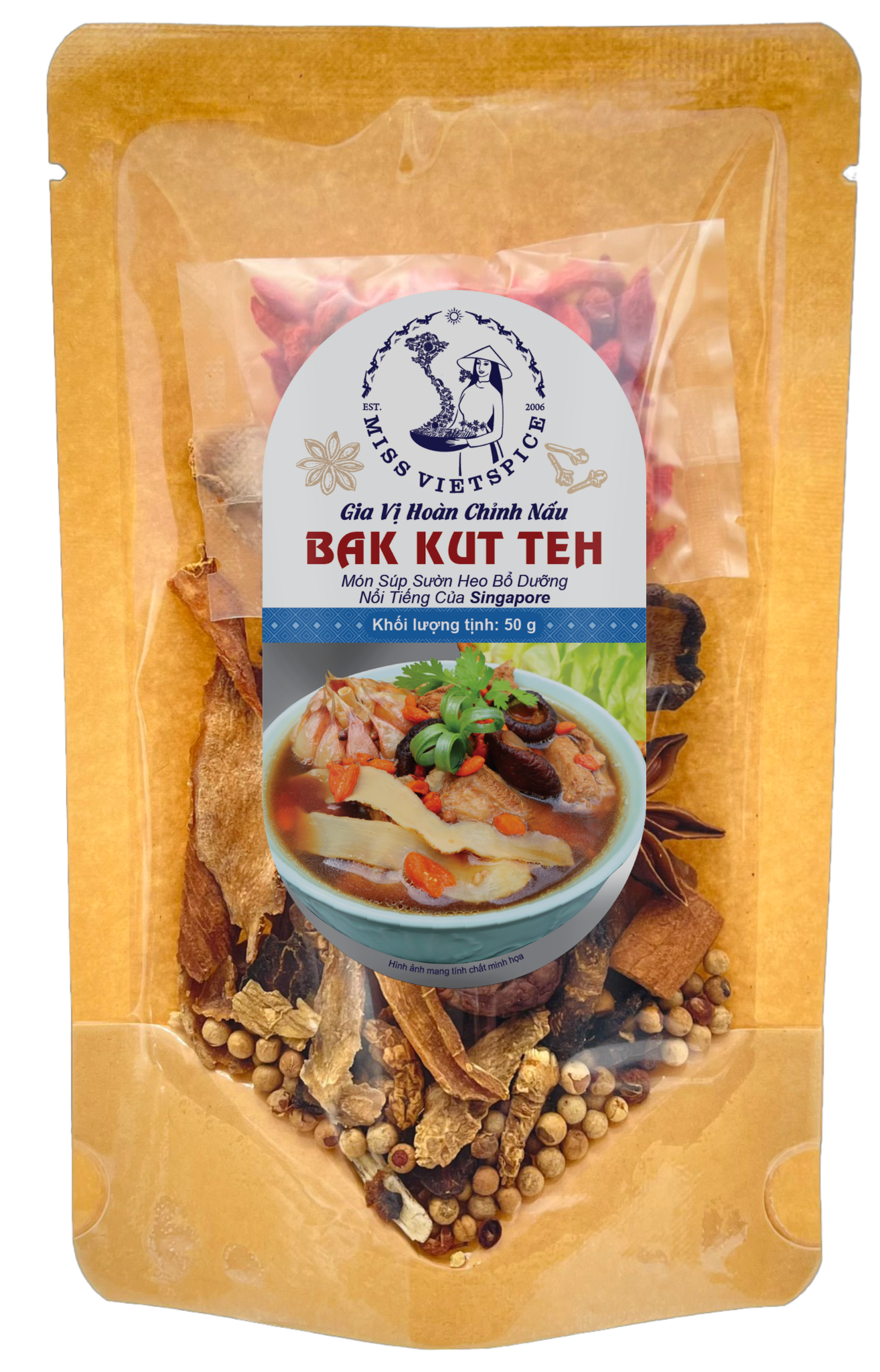 - Công thức gia vị đặc biệt: Công thức gia vị hoàn chỉnh được Miss Vietspice nghiên cứu kỹ lưỡng, giúp bạn dễ dàng nấu món Bak Kut Teh thơm ngon.